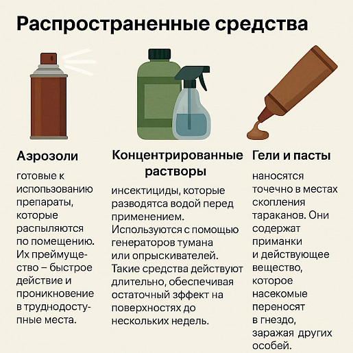 - гелевые и пылевые инсектициды, которые действуют на насекомых постепенно и долго сохраняются на поверхностях.
